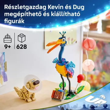 LEGO® ǀ Disney ir Pixar Kevinas ir Dagas (43290) žaidimų konstruktoriaus rinkinyje laukia jaudinantys nuotykiai vaikams nuo 9 metų amžiaus. Šis rinkinys, sukurtas pagal animacinį filmą "Aukštyn!", pirmą kartą LEGO ǀ Disney ir Pixar statomų žaislų serijoje apima Keviną, paukštį, ir Dagą, šunį, kaip figūrėles. Rinkinys turi stovą su judančiais lapais ir vietą "Mano nuotykių knygai", raudoną balioną, apsauginį apykaklį, Dago specialų antkaklį ir dar daug kitų priedų. Šios figūrėlės įkvepia vaizduotės žaidimui arba gali tarnauti kaip kūrybingas dekoratyvinis elementas lentynoje ar ant stalo.